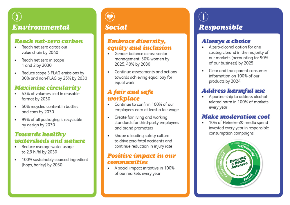 In 2025, HEINEKEN’s scope 3 FLAG emissions reduced by 23% (2024: 23%) and non-FLAG emissions reduced by 15% (2024: 11%) compared to a 2022 baseline. Full details are available in HEINEKEN’s 2025 annual report.